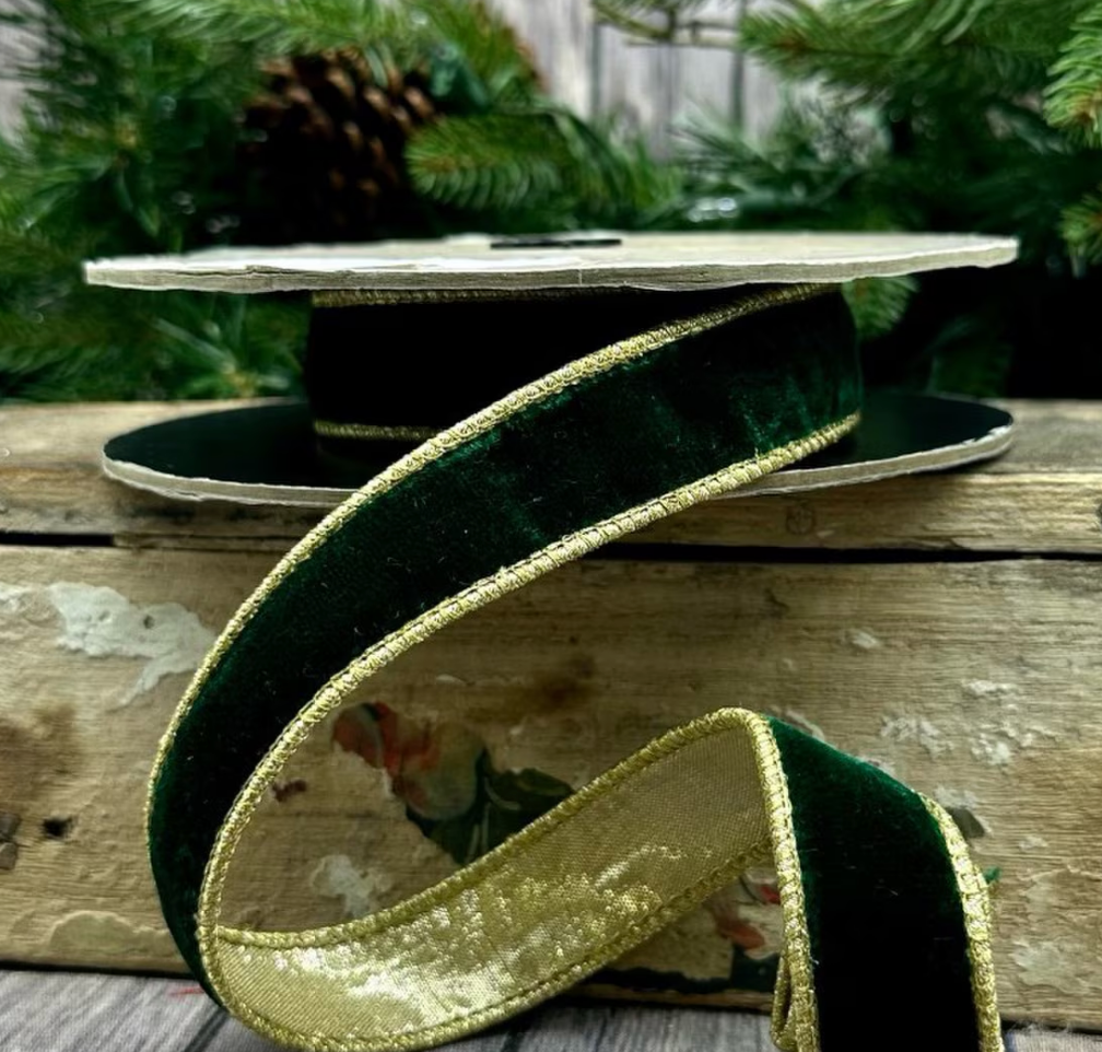 Description: 1" x 10yds VP lush velvet in emerald Green