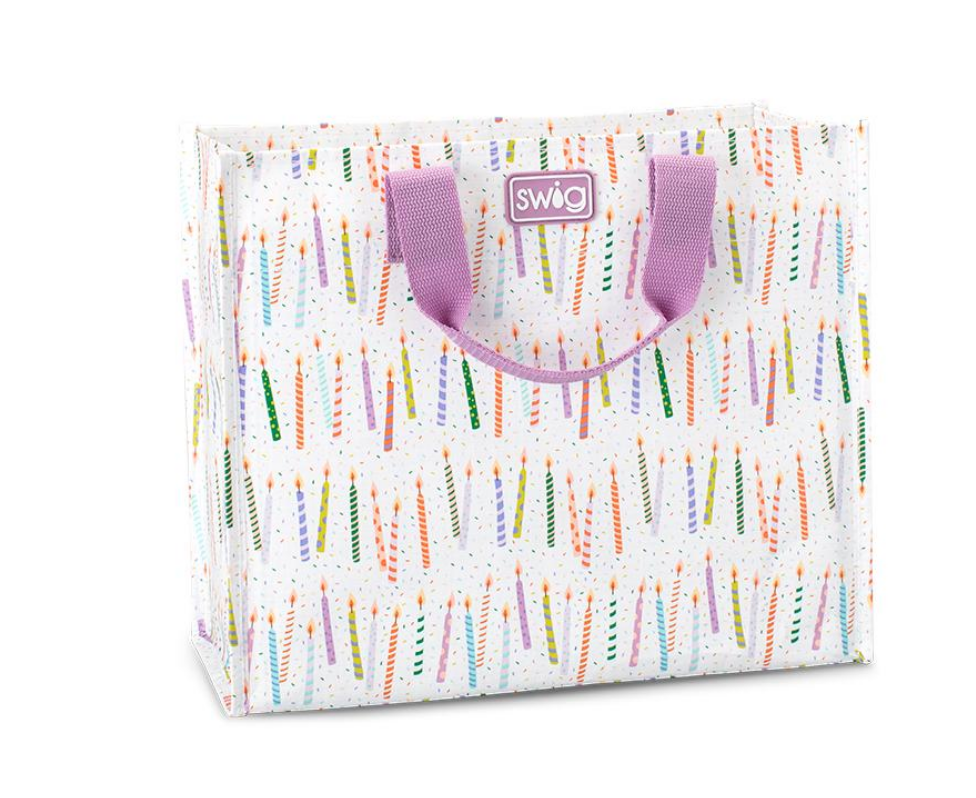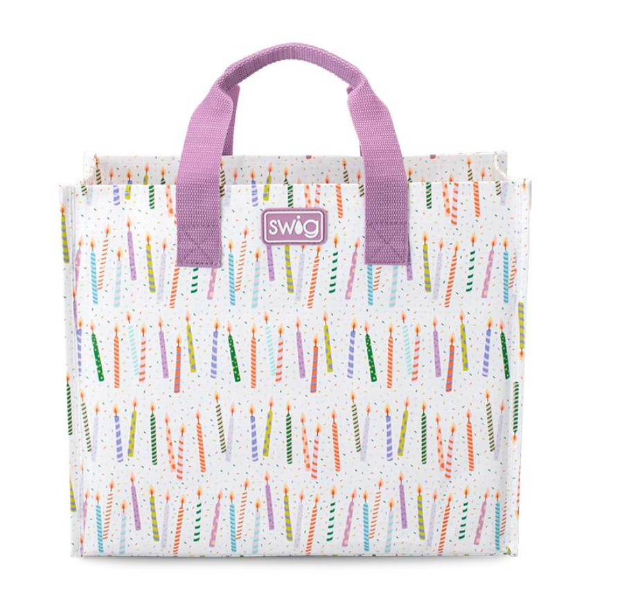 Swig Life's Reusable Bags are perfect for all of life's celebrations; birthdays, weddings, and holiday parties, and are a go-to favorite for everyday use. This reusable bag is ideal for large to medium-sized gifts like shoes, books, or gifting aย Swig Lunch Bag. Reuse this tote for girlfriend get-togethers, kid play dates, or a trip to the market.