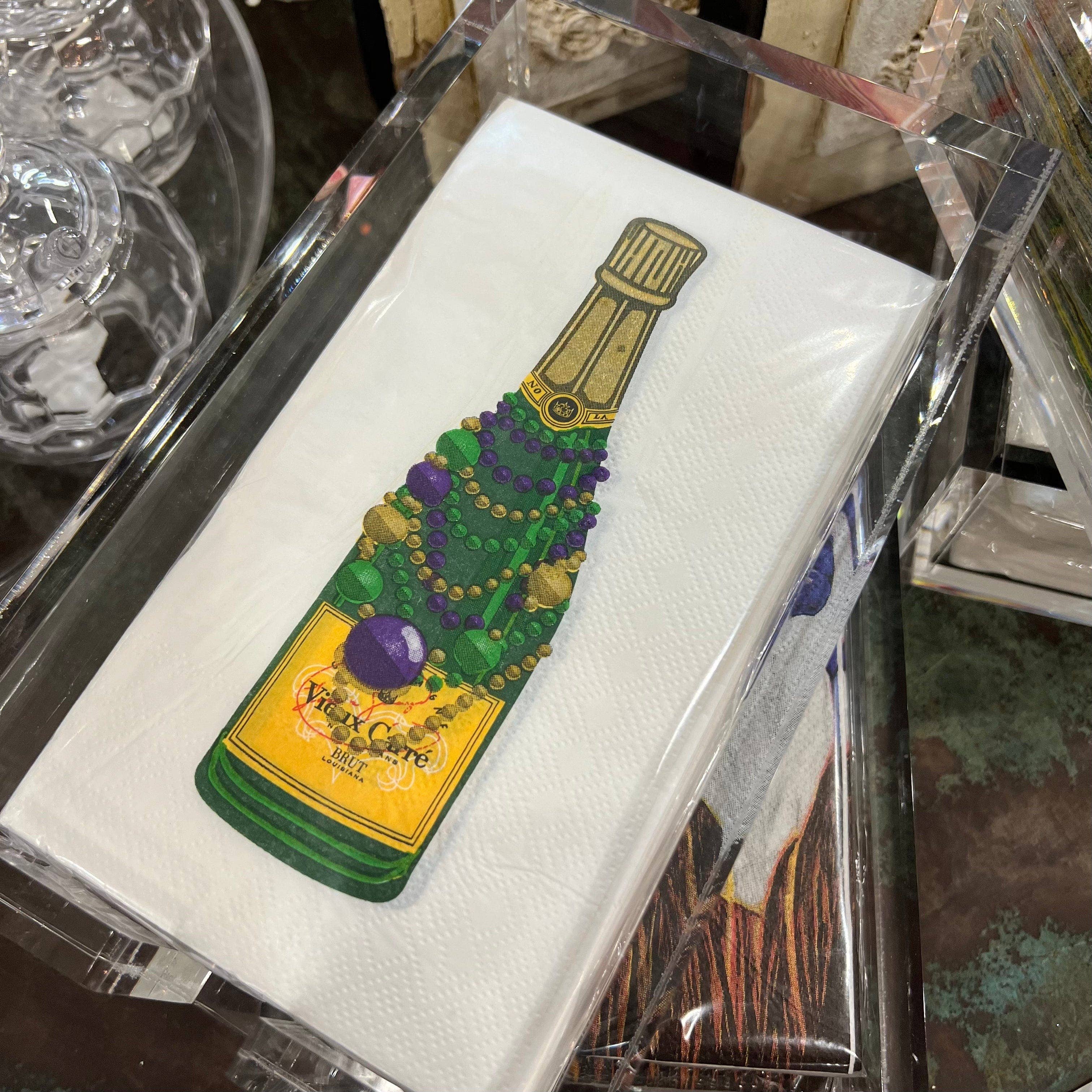 Mardi Gras Champagne Bottle Art on Guest Napkin