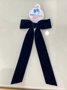This adorable medium velvet bowtie is the perfect accessory for little girls looking for a fashionable, sassy look! The plain wrap and 9 inch streamer tails give this bowtie a perfect balance of sophistication and fun — adding a touch of pizzazz to any outfit! These bows are sure to stay in her hair all day with our patented WeeStay™ no-slip hair clip.