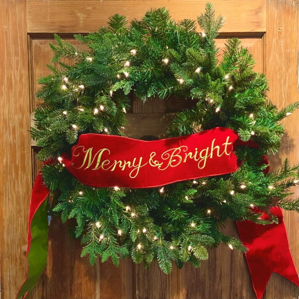 Velvet Hot Red "Merry & Bright" Wired Banner