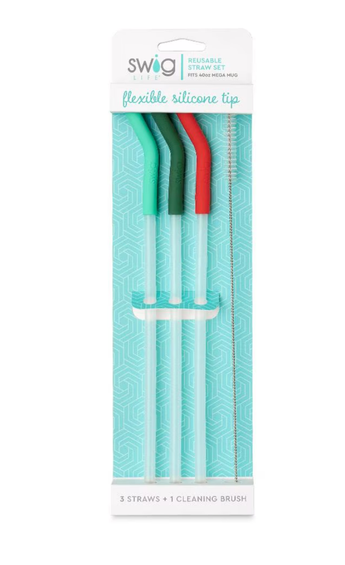 Mint/Green/Red Reusable Straw Set (Mega Mugs)