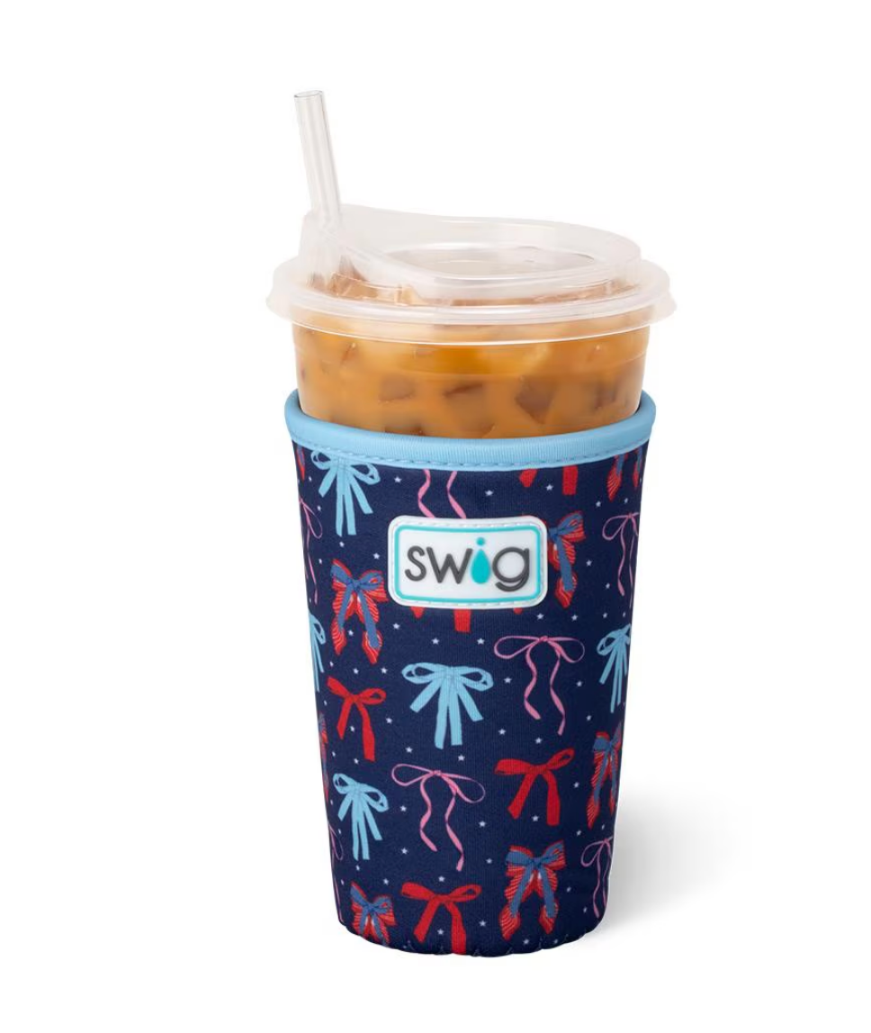 Cool drinks, dry hands! 🧊☕ Dress to impress this summer with preppy patriotic bows on a marine navy background.