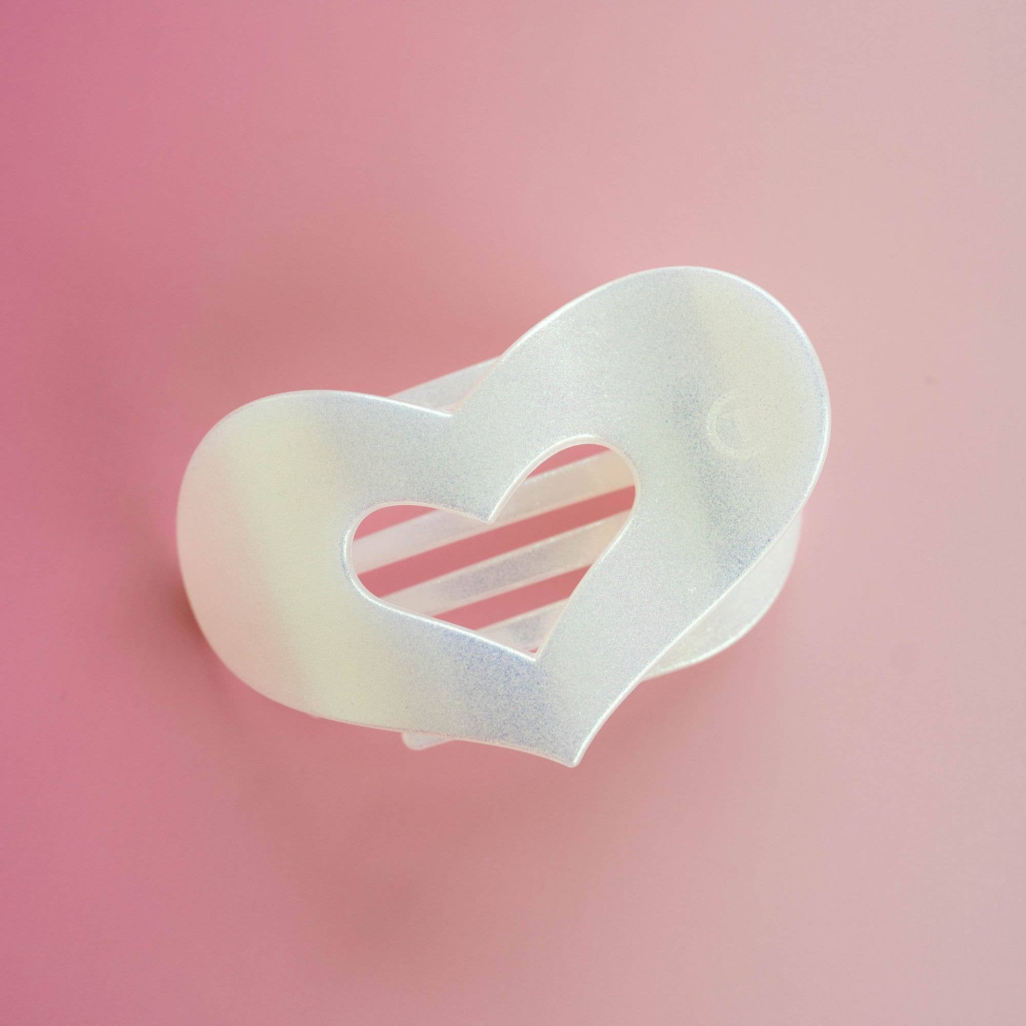 Lay flat and relax with the new TELETIES Mother of Pearl Heart Clip. This hair clip is designed to allow you to lay back flat, do yoga, or sit comfortably in a seat with a headrest, and it is made with the same material that is nearly unbreakable.
