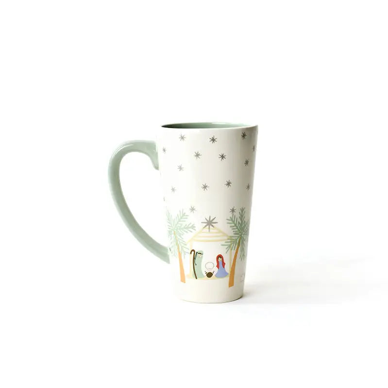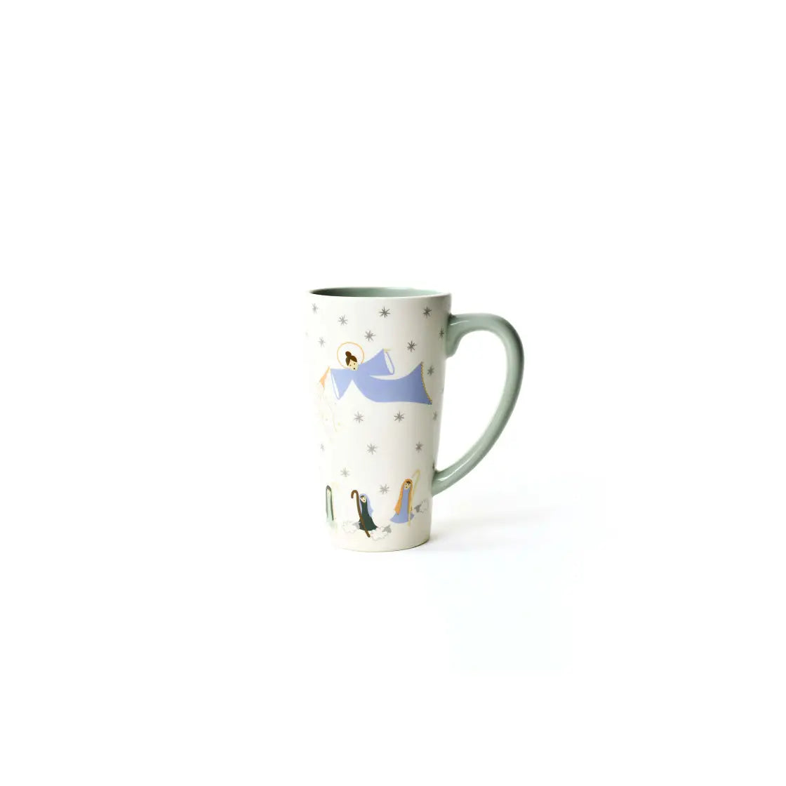 Wrap your hands around the warmth of Christmas while drinking your favorite hot beverages in our O Holy Night Tall Mug. Your favorite mug shape comes with the nativity icon and a metallic gold star finish. Easy to take on the go any time of year and ideal for holiday nights around the fire or to share a favorite drink with friends. Easily giftable, this celebratory mug blends with your holiday décor and makes a perfect addition to any Coton Colors collection. Product Dimensions: 5in L x 3.5in W x 6in H