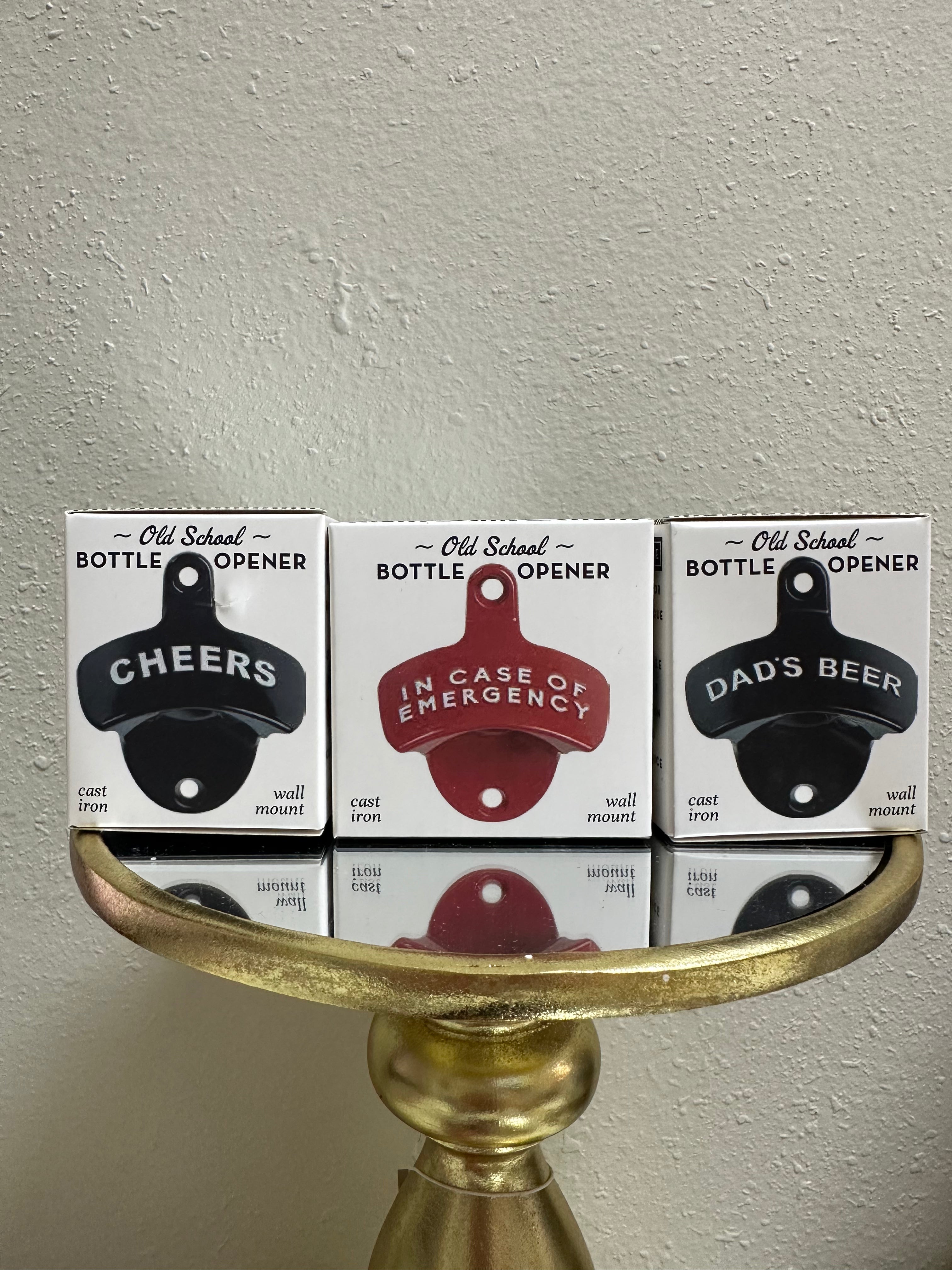 Open up your world of refreshment with our Wall Mount Bottle Opener. Crafted from durable cast iron, this essential tool not only pops open bottles with ease but also adds a touch of vintage charm to any space. Packaged in a stylish gift box, it's the perfect present for any beer enthusiast or home entertainer. Choose from three classic sayings - Cheers, In Case of Emergency, or Dad's Beer - to suit your style and personality.