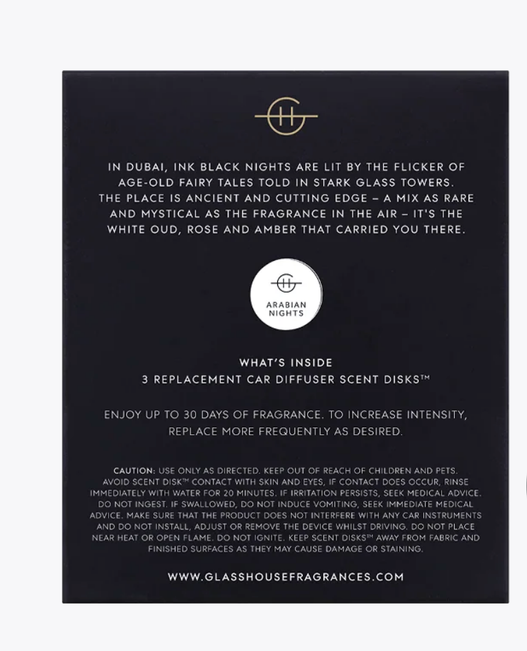 Contains: 3 x Replacement Arabian Nights Car Diffuser Scent Disks™