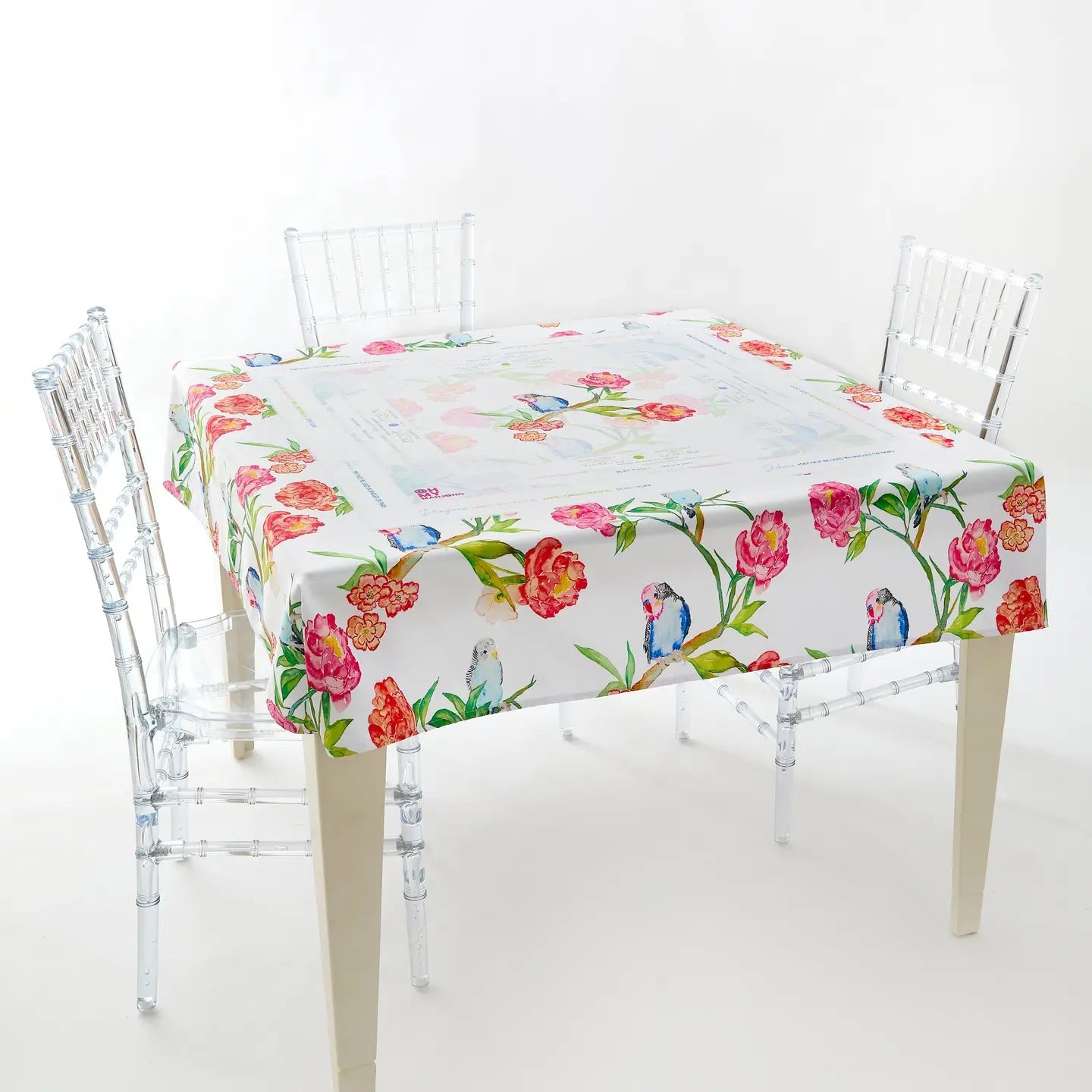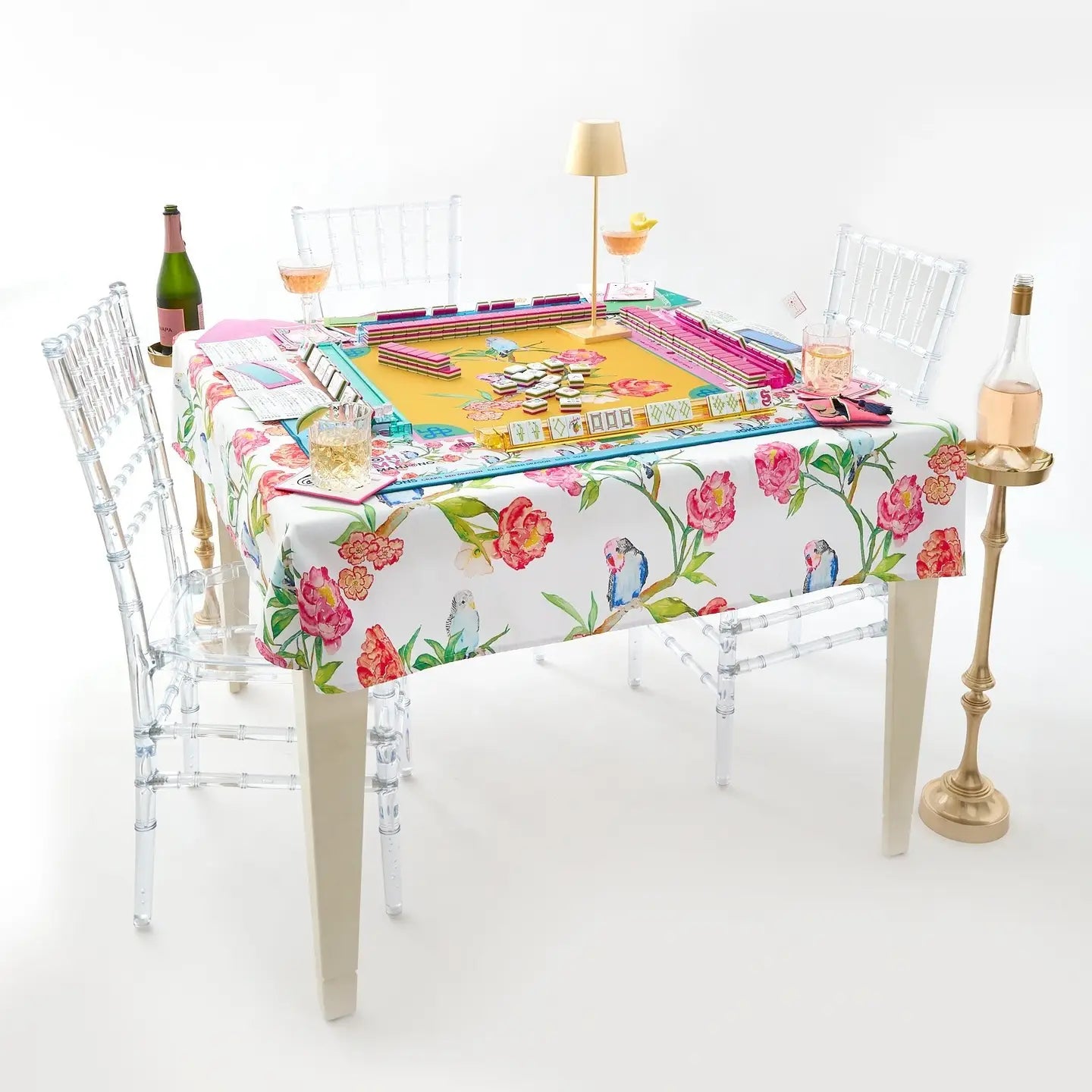 Get ready to take your Mahjong game to the next level with our Mahjong Instructional Playing Tablecloth! Say goodbye to ordinary table covers—this vibrant tropical bird and floral watercolor print, crafted by BrookeWright, brings elegance to any gaming environment. This tablecloth includes essential rules for American Mahjong, covering The Charleston, suit and dragon pairings, gameplay mechanics, wall direction, and the challenging "no jokers in a pair" rule. Elevate your game night with both style and practicality! Dimensions: 56”x 56” 100% Polyester Machine washable. Iron on medium heat A collaboration with Brooke Wright Designs