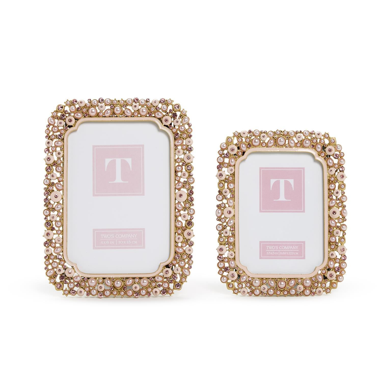 - Elevate your home decor with these timeless photo frames, featuring delicate pink pearls and sparkling rhinestones that exude sophistication and charm