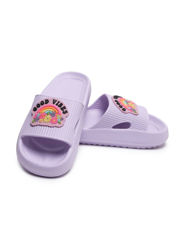 Quick Dry Pool Slide Sandals - "Good Vibes" - Light Purple: Small