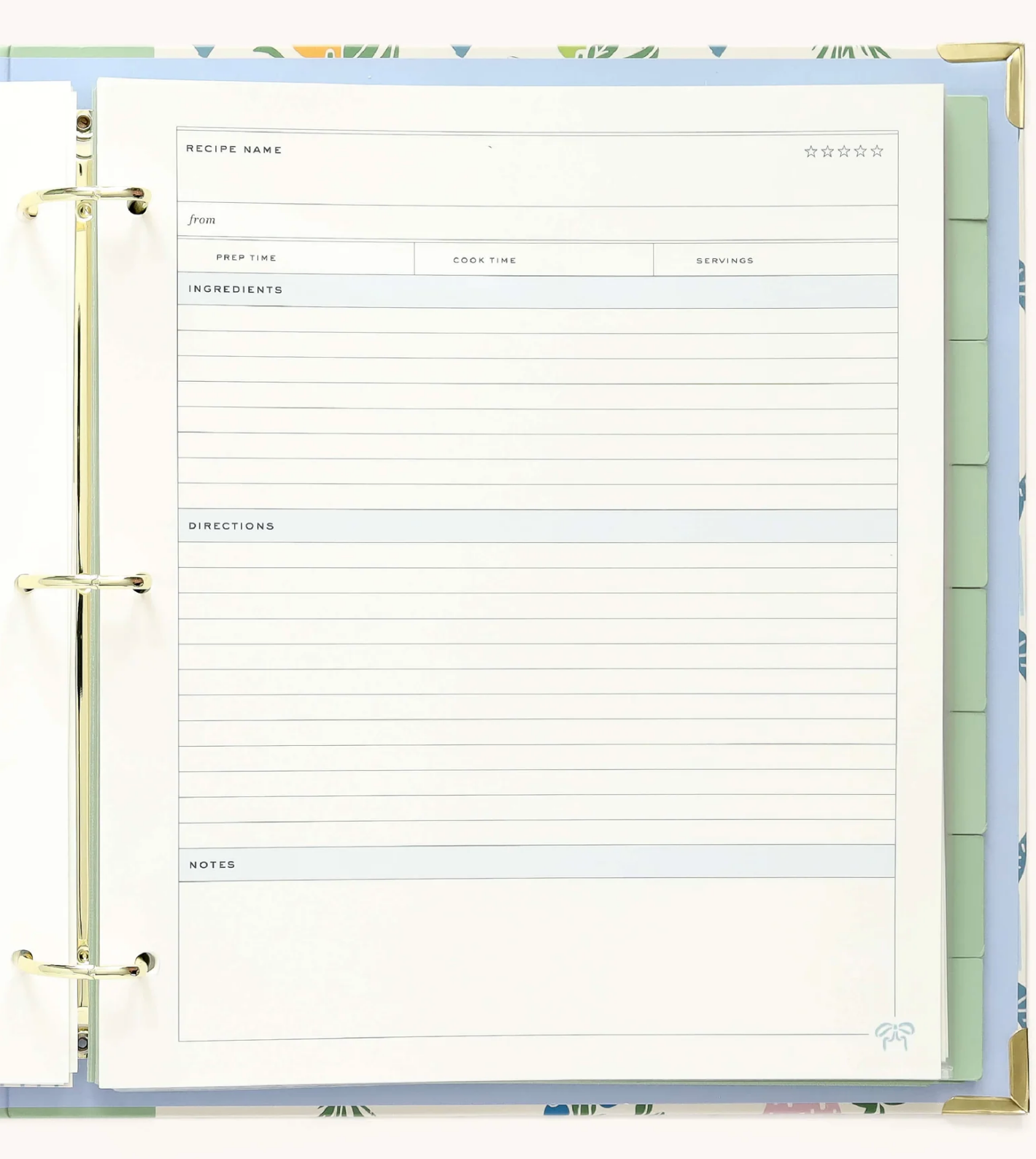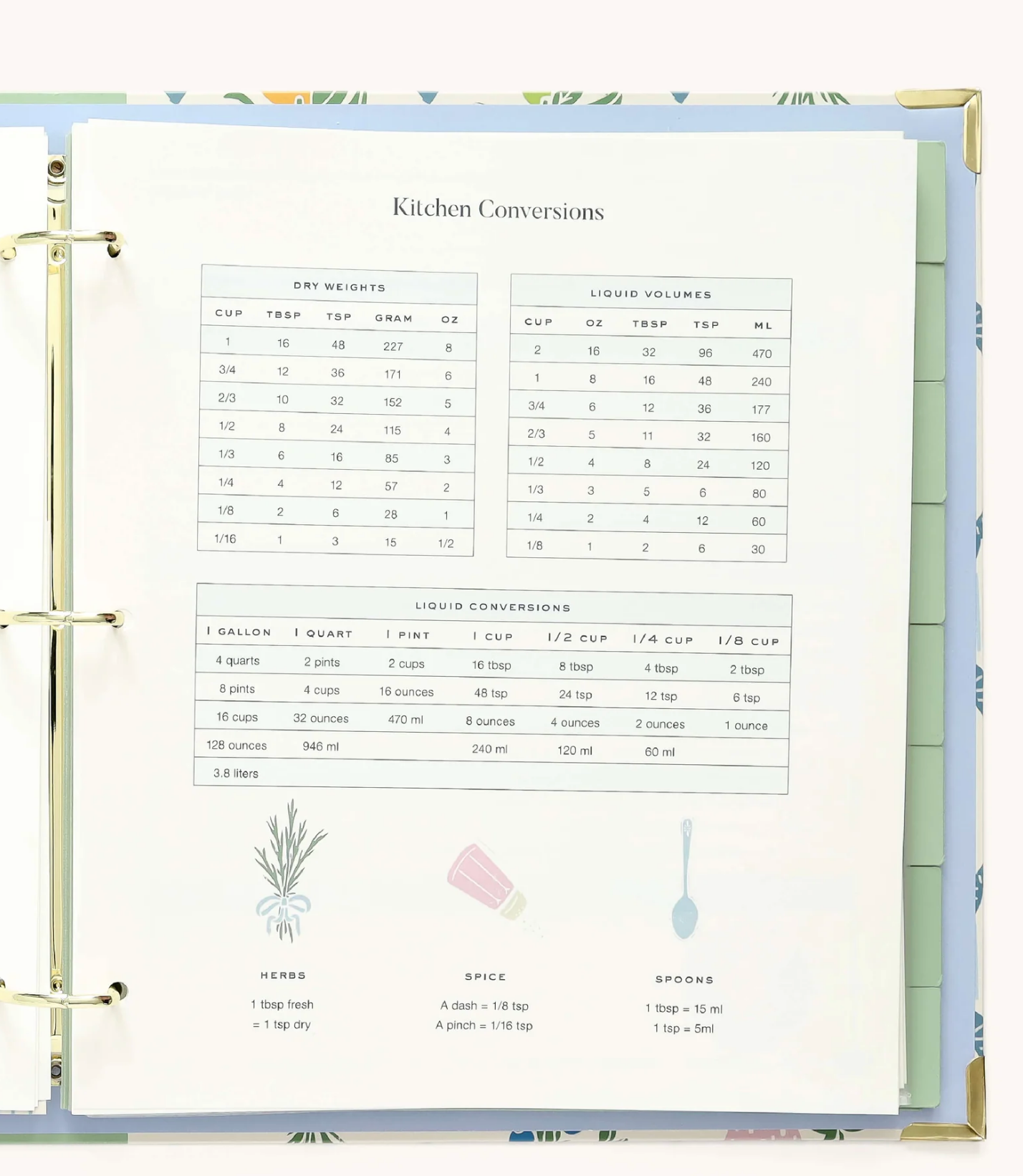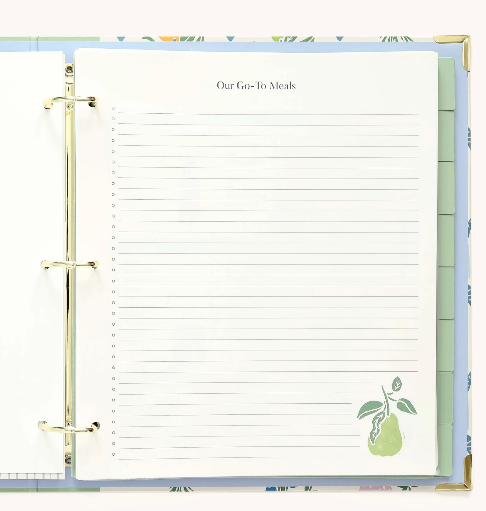 Cherish family favorites and new creations with our Heirloom Kitchen Recipe Binder, designed to keep your most-loved recipes beautifully organized. With gold foil details, tabbed dividers, and clear sheet protectors, this timeless binder makes it easy to preserve and pass down special meals for generations to come.