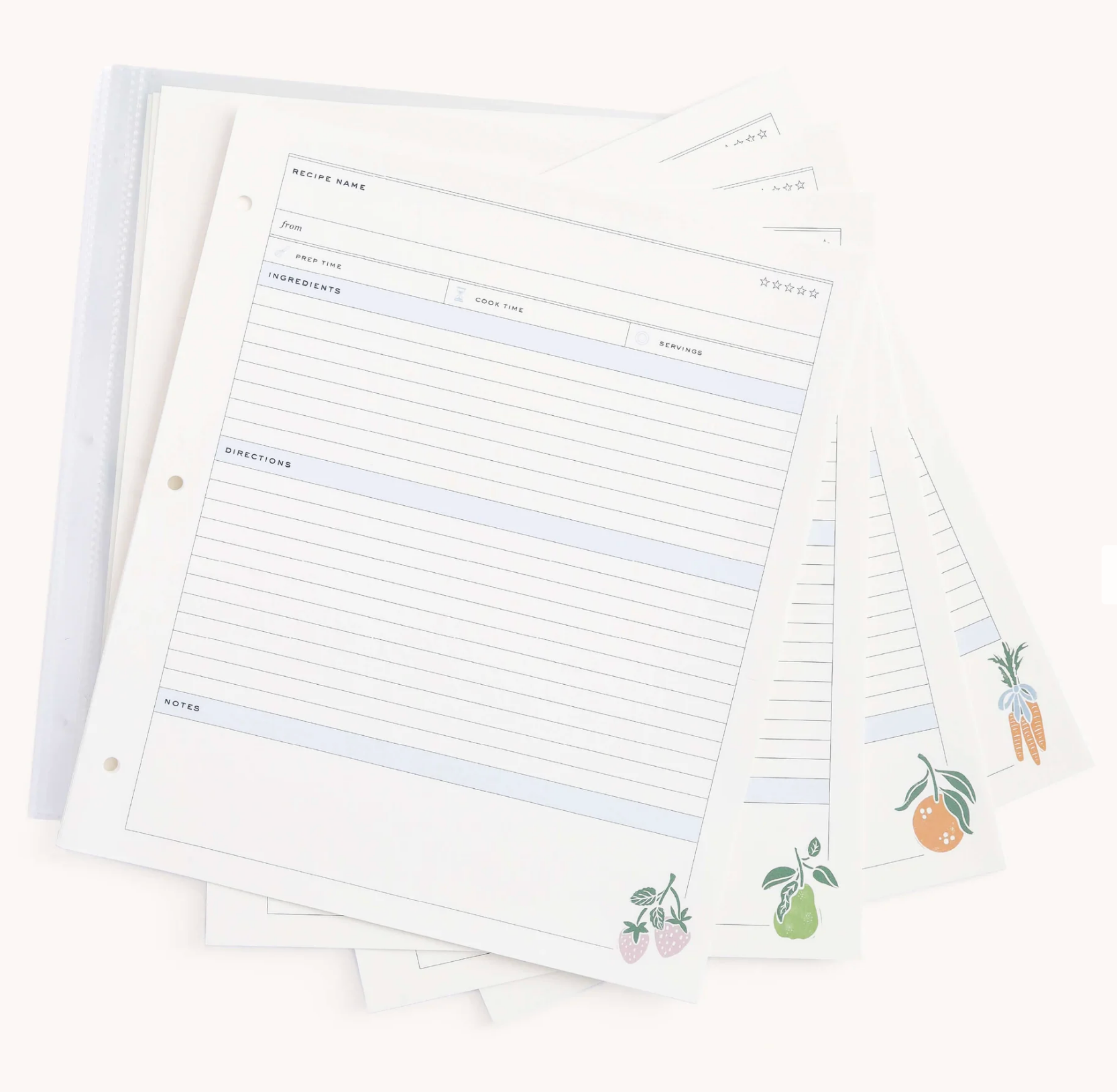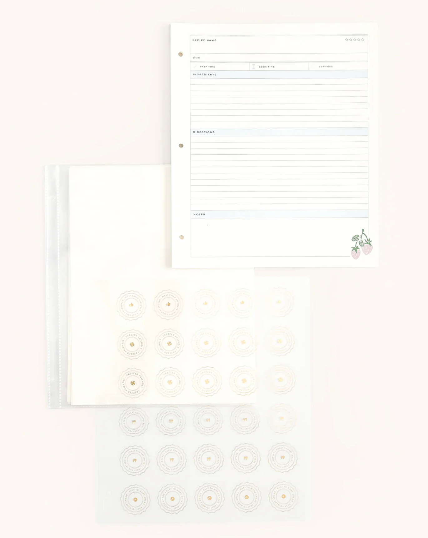 Keep your Heirloom Recipe Binder beautifully updated with our Recipe Binder Page Pack, featuring extra recipe pages and clear sheet protectors to preserve your favorite meals. Whether you're adding new family traditions or organizing passed-down favorites, this set ensures your collection stays neat and timeless for years to come