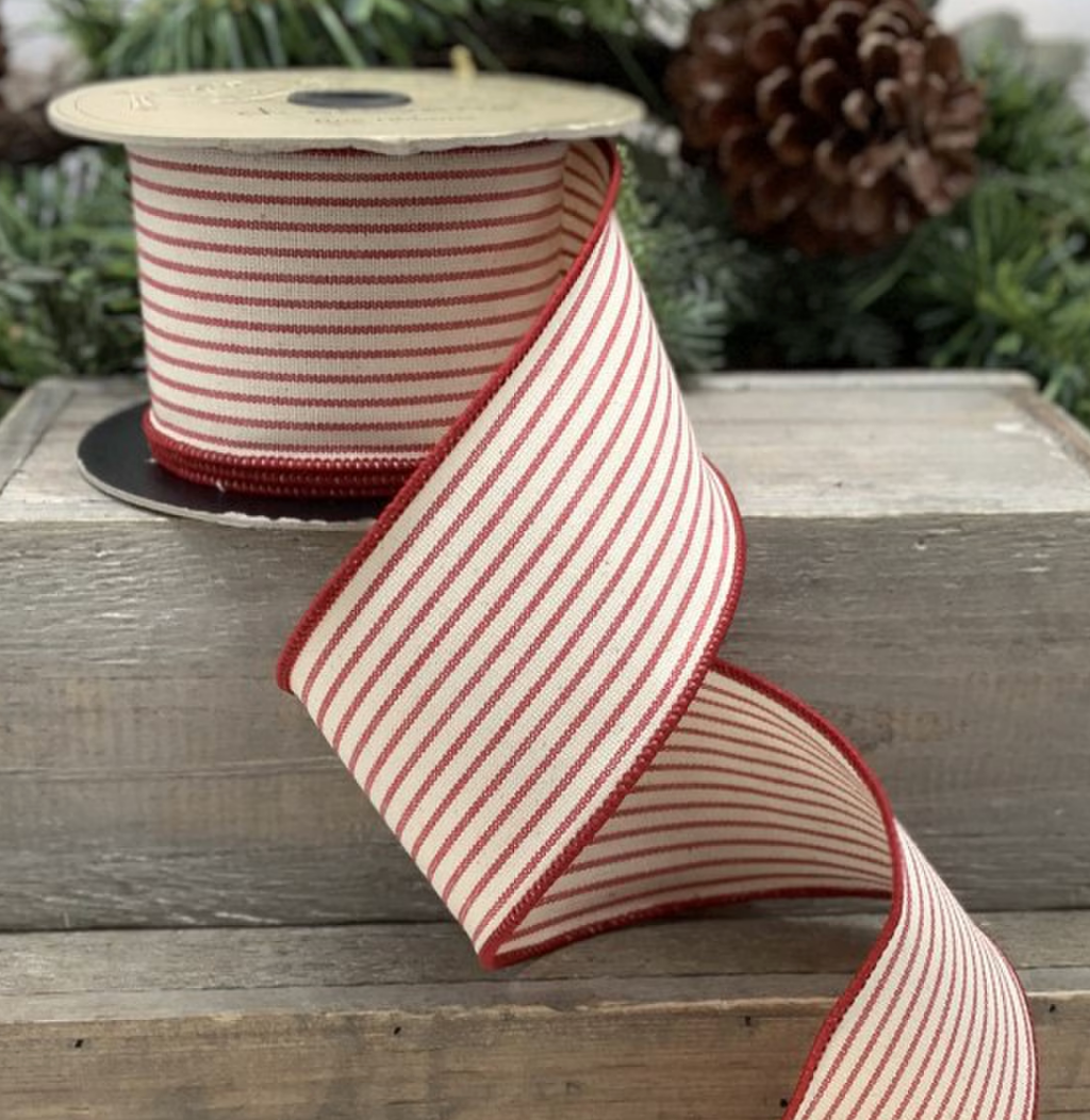 Description: 2.5" x 10yds coarse linen stripes, red-cream