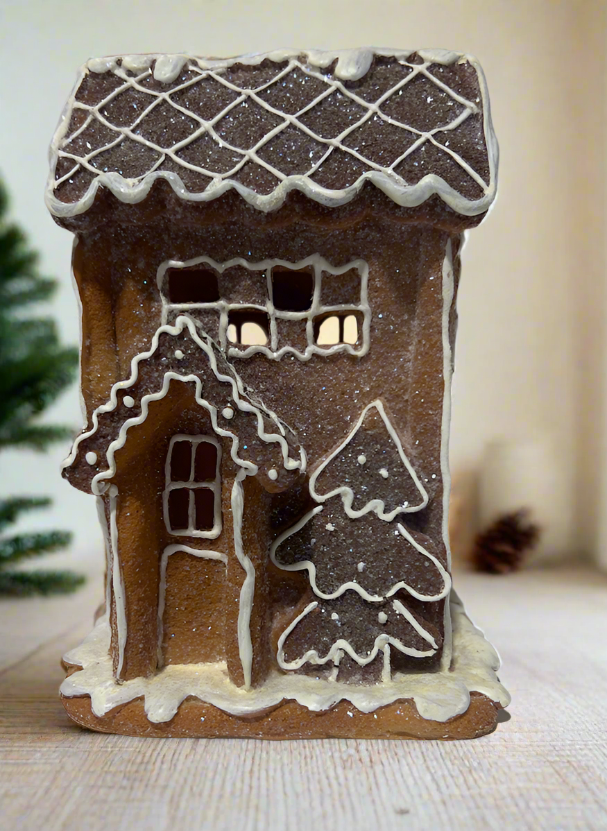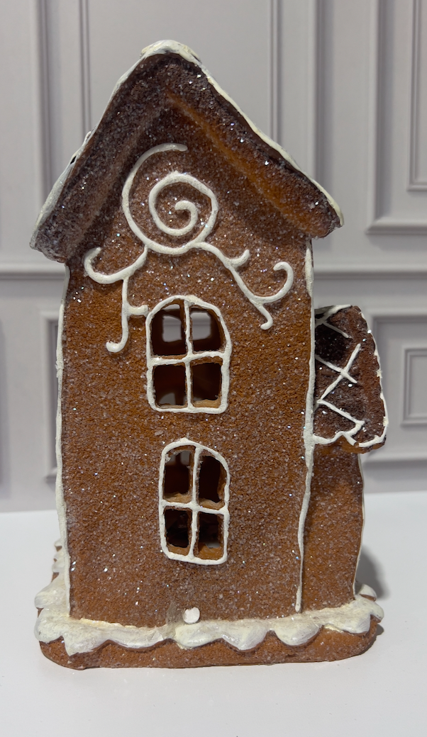 Add a sprinkle of festive fun with this Resin Gingerbread House glowing from within by a cheerful LED light. Its sweet, detailed design lighting up any space makes holiday decorating a joyful treat. Perfect for creating cozy vibes and a dash of holiday magic wherever it shines!