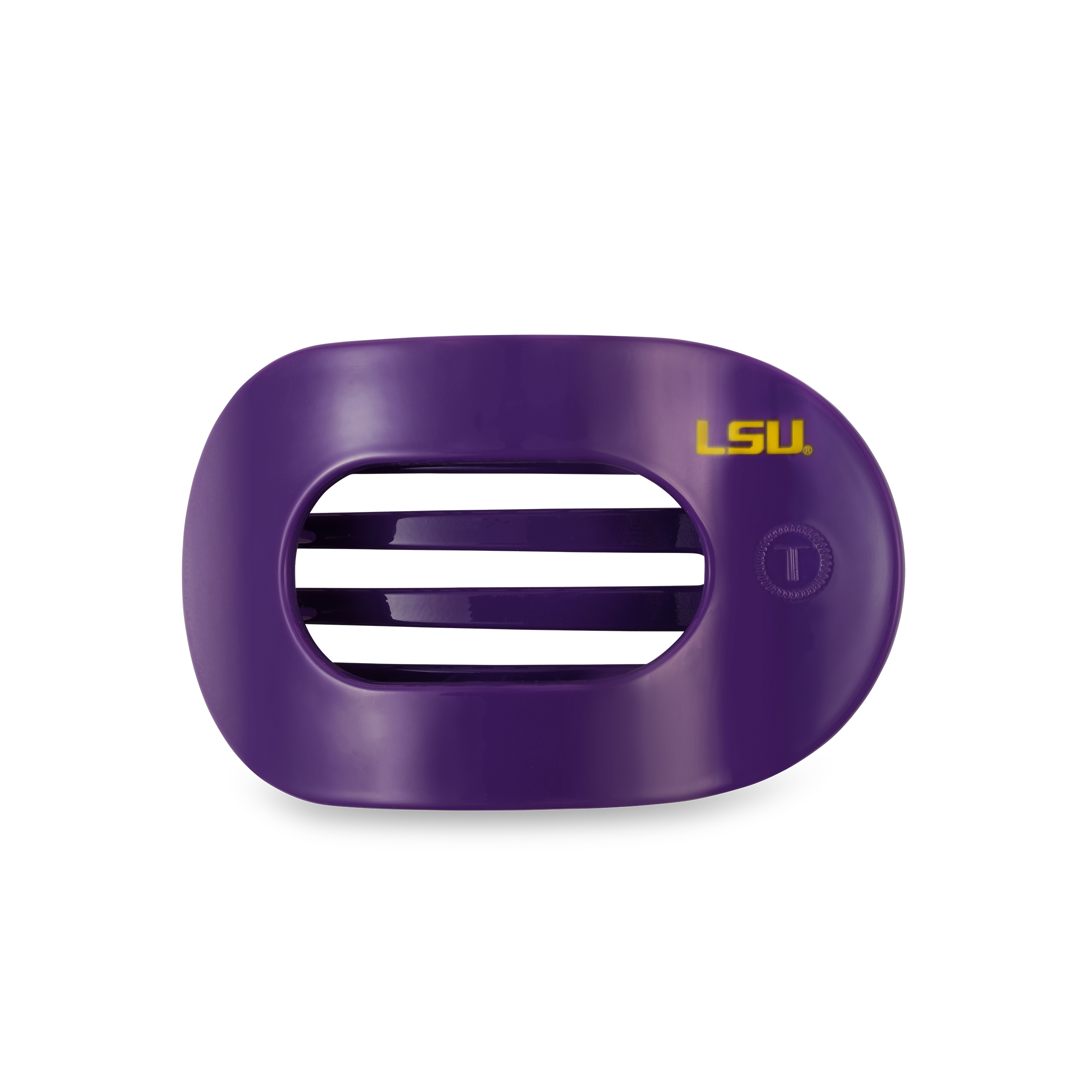 Unwind and relax with the new TELETIES Flat Round Hair Clip! Designed with our same innovative material that is nearly unbreakable, this clip is perfect for lying down, doing yoga or simply laying back without discomfort. Hold your hair and enhance your style with the new Louisiana State University TELETIES Clip! Geaux Tigers!