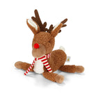 Rudie the Reindeer, the festive stuffed animal plush pal! With warm textured frown fur, soft white belly, and adorable red nose, Rudie is ready to light up your holiday season. Adorned with a charming red and white striped scarf and cute antlers, this delightful reindeer is perfect for snuggling and spreading holiday cheer! Embrace the festive fun with Rudie and let your celebrations be filled with cuddles and cheer!
