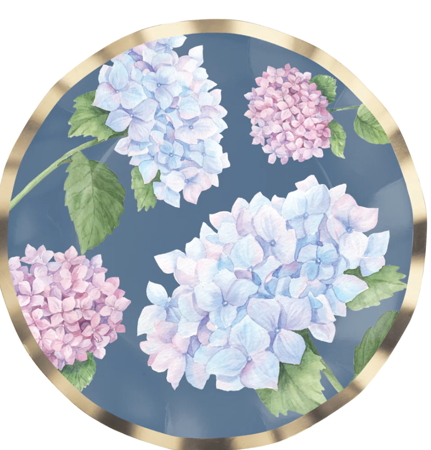 These stunning paper plates will make you want to host a party at the first chance you get! These ruffled foil edge plates feature images of beautiful hydrangea flowers on a serene blue background! Add a touch of elegance to your holiday gatherings! Impress your guests with these perfect pieces. Your guests will not believe that these are paper plates! Pairs beautifully with our Bella plastic cutlery, matching napkins, paper baking cups, and party picks!