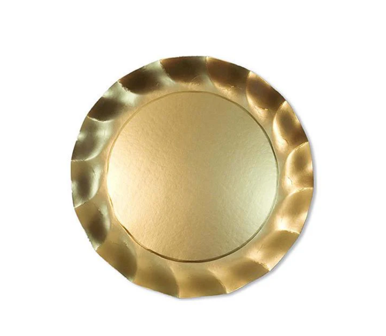 Satin Gold Wavy Paper Dinner Plates/8pk
