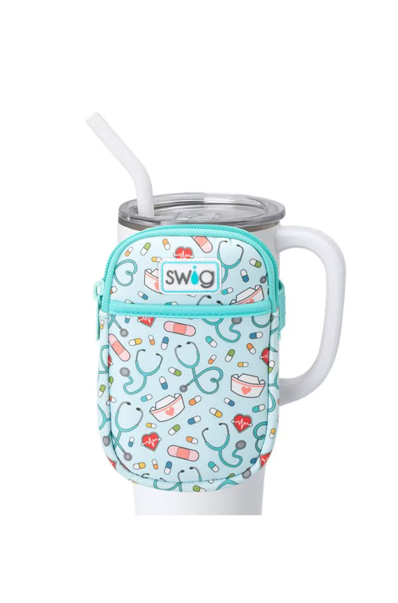 Our Mega Mug Pouch is the go-to drinkware accessory for any hands-free outing! Whether for school drop-offs, racket clubs, the gym, or running errands, this zippered pouch stores all your essentials. Keep your ID, cards, hair ties, or any other small essentials secured, and leave your purse at home.