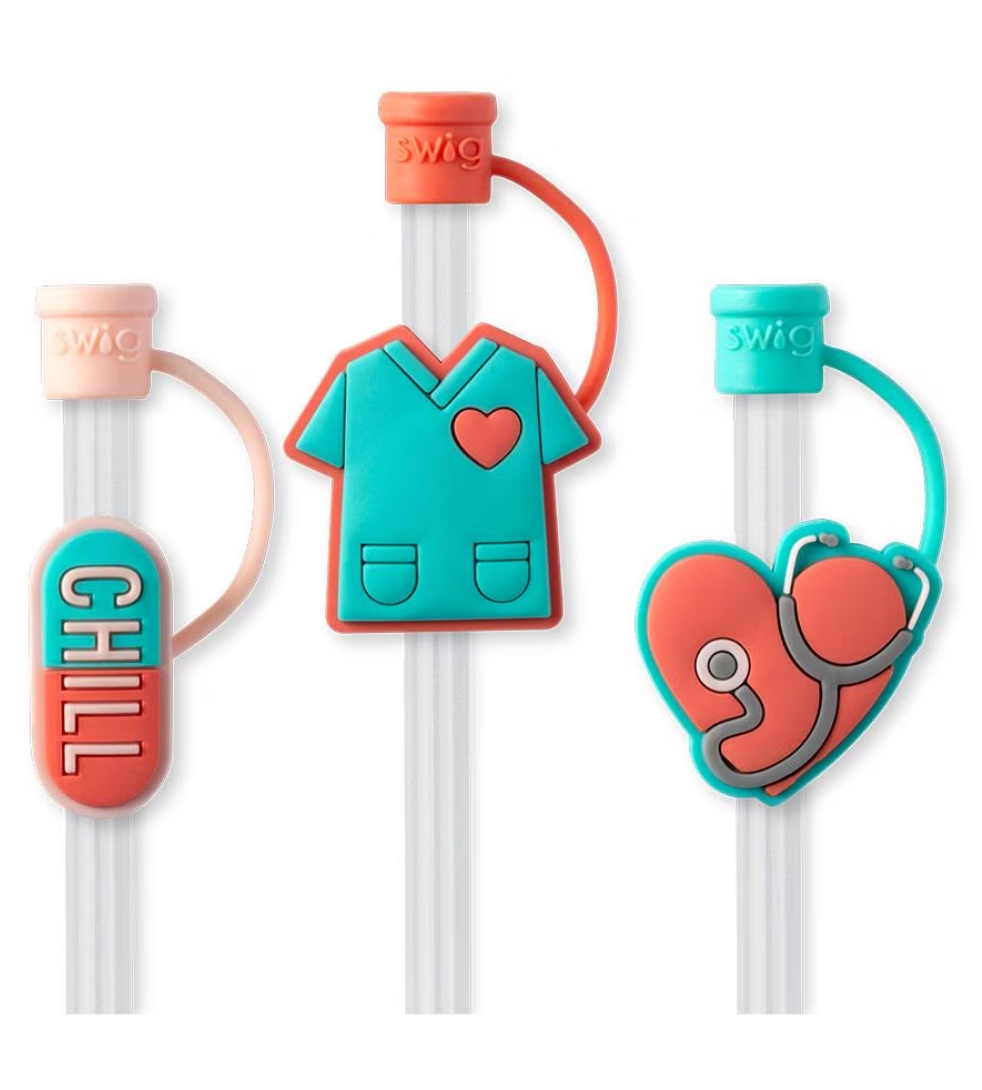 Sip in style while keeping your drinks clean and safe with our adorable Straw Topper Sets! This set features three reusable straws with whimsical silicone charms featuring protective caps. Keep them all for yourself or share them with a friend!