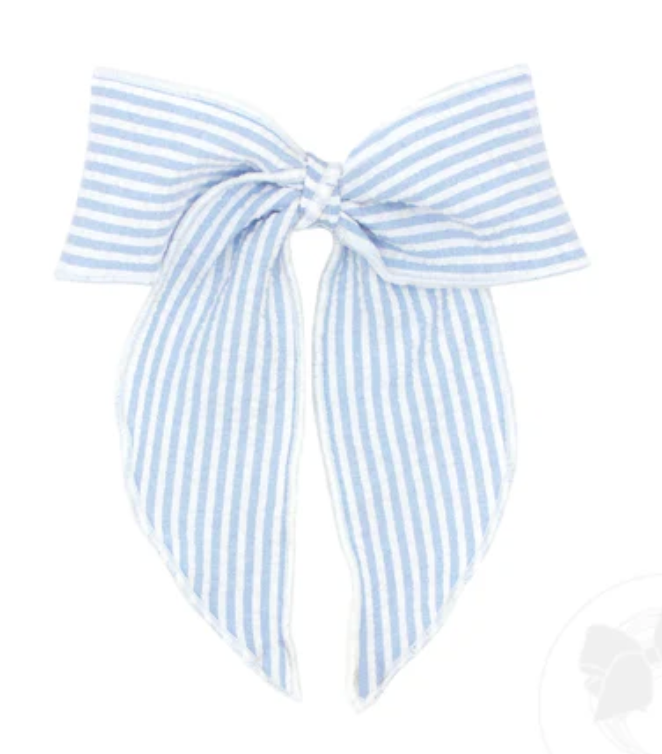 Talk about bow-tiful! Your little one will be the center of attention wherever she goes in this fun and flirty hair bow. The seersucker fabric makes it perfectly suited for any spring or summer day.