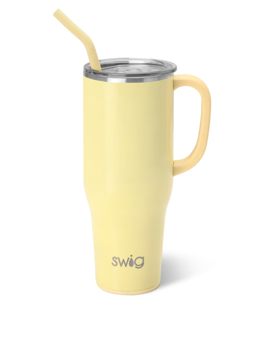 Hydrating has never been easier with our 40oz Insulated Mega Mug! A cup holder-friendly frame, a comfort-grip handle, and a plastic straw with a silicone flexi-tip all come together to create your new favorite Swig.
