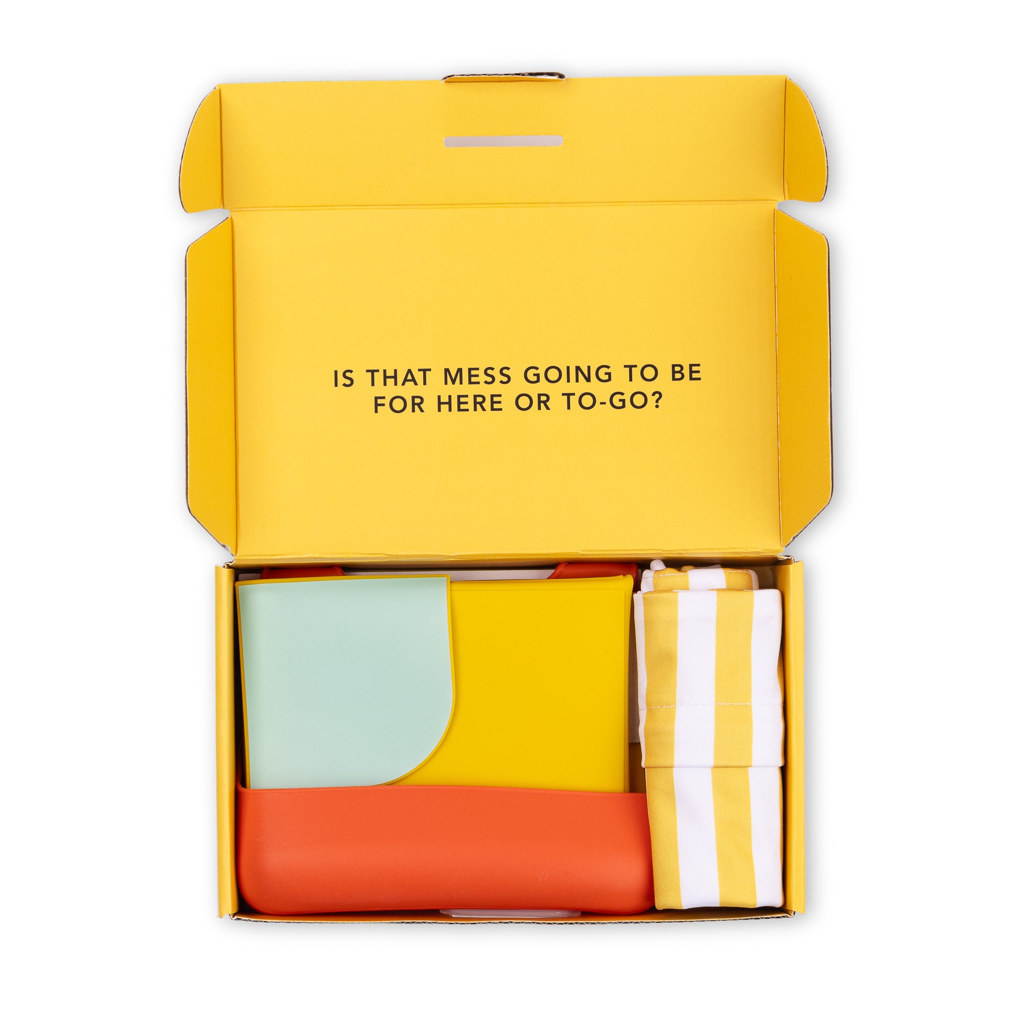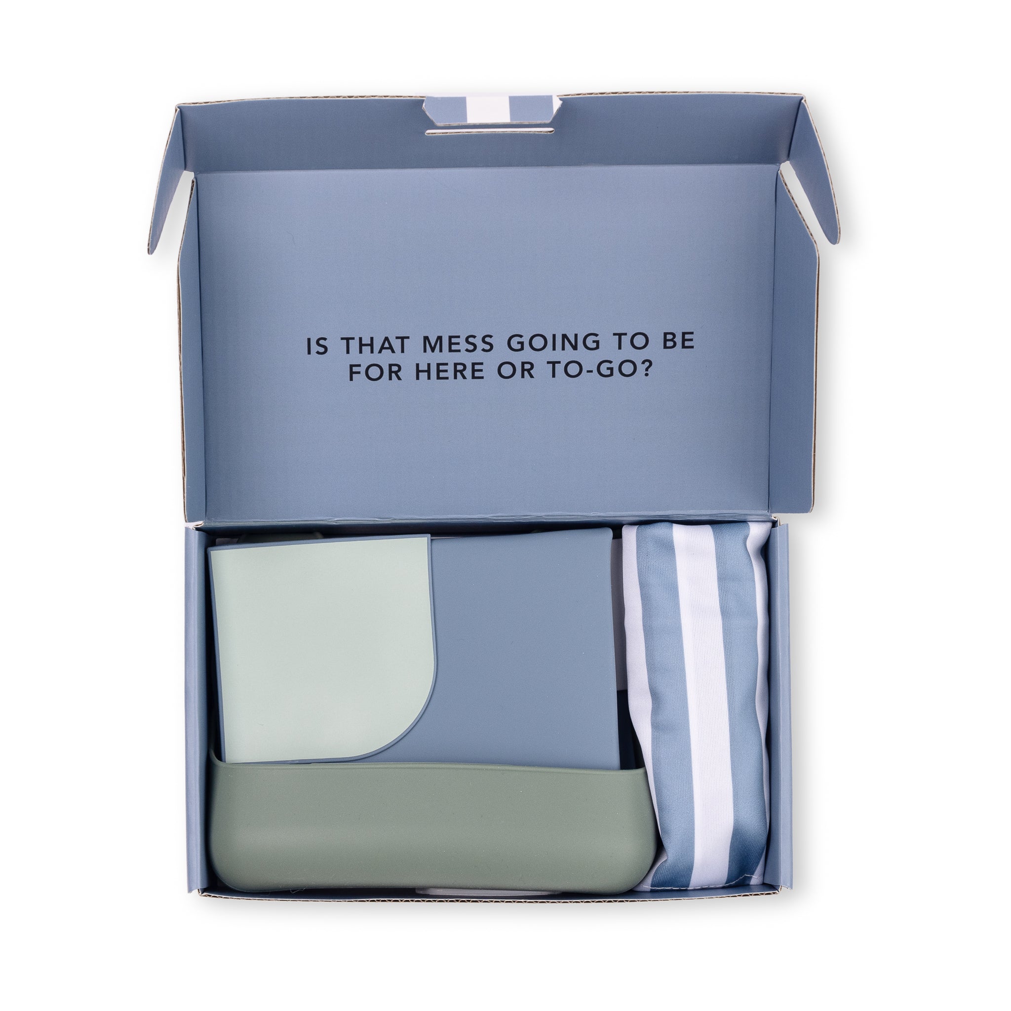 Pack, go, eat, repeat! Introducing our expert-approved toolkit of mealtime essentials to take on-the-go! This set is the perfect new baby gift and a parent must-have. Is that mess going to be for here or to-go? Just pack up the bib and placemat in the on-the-go bag, throw in some snacks and meals can happen anywhere.