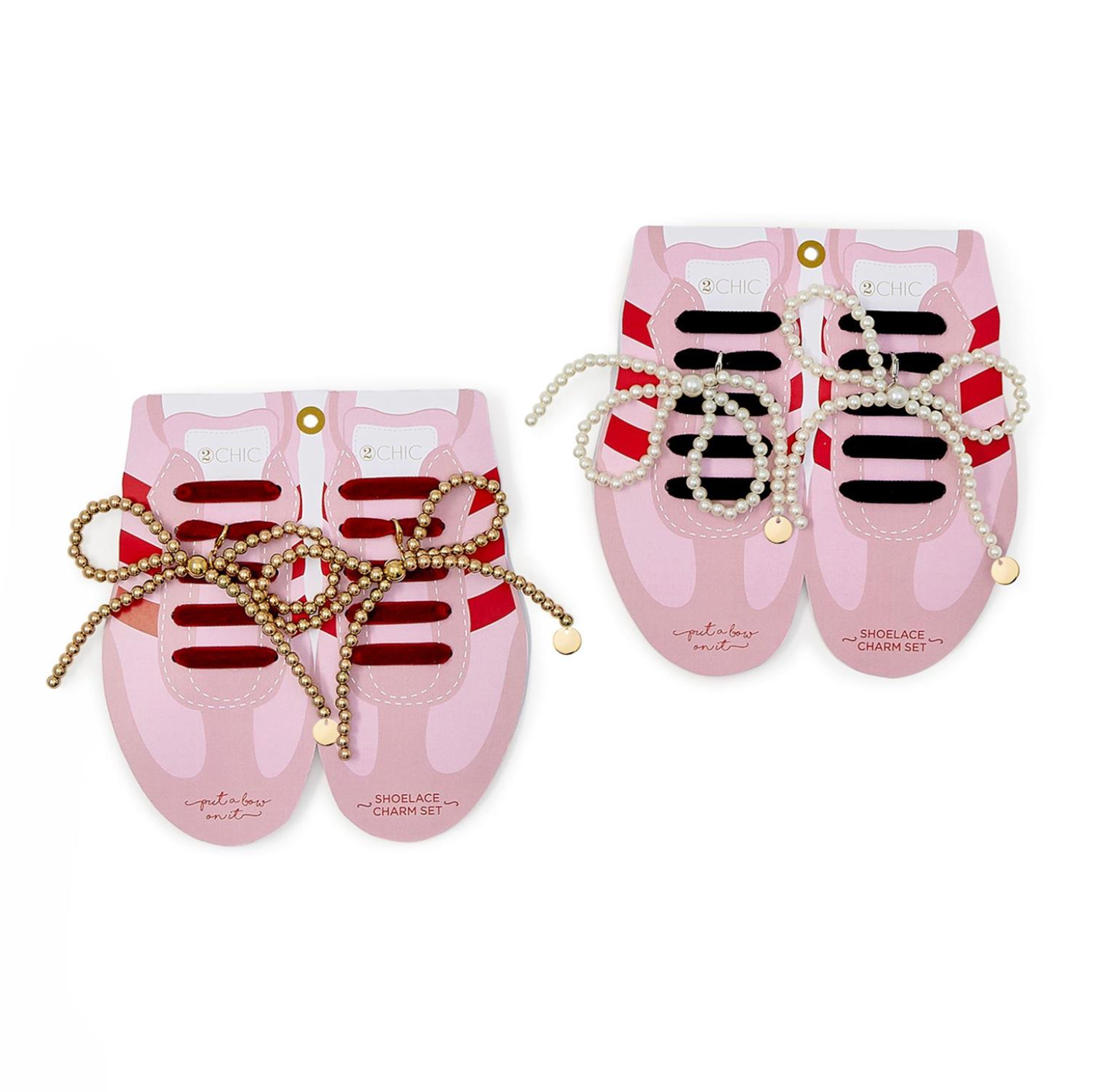 Elevate your shoe game with our SneakHer Chic Velvet Laces and Bow Charms. These charming accessories come in two luxurious color combinations: Burgundy/Gold and Black/Pearl, adding a touch of elegance to any footwear. These charms are designed to impress and are the perfect addition to your collection. Perfect for those looking to add a stylish flair to their shoes, these charms are a must-have for fashion-forward individuals.