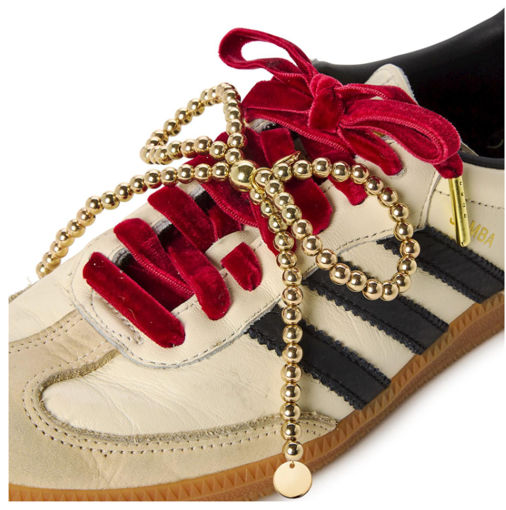 - Elevate your shoe game with luxurious velvet laces and bow charms