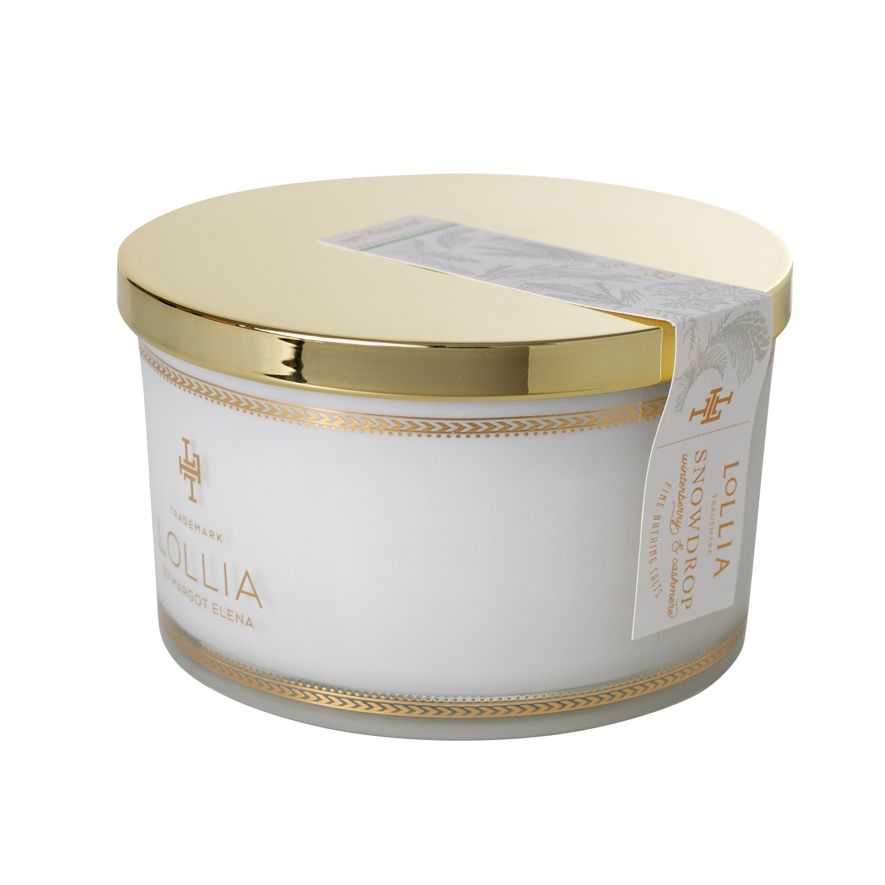 Elevate your bath time with Snowdrop Bath Salts, beautifully presented in a glass jar featuring gold accents and a reflective lid that add a radiant touch. Inside, a delicate linen drawstring bag holds a luxurious sea salt soak infused with the soothing Winterberry & Cashmere fragrance. Use the elegant gold spoon to sprinkle the salts into your bath and drift into a blissful, aromatic experience. Perfect for creating a serene soak and a thoughtful gift for yourself or someone special.