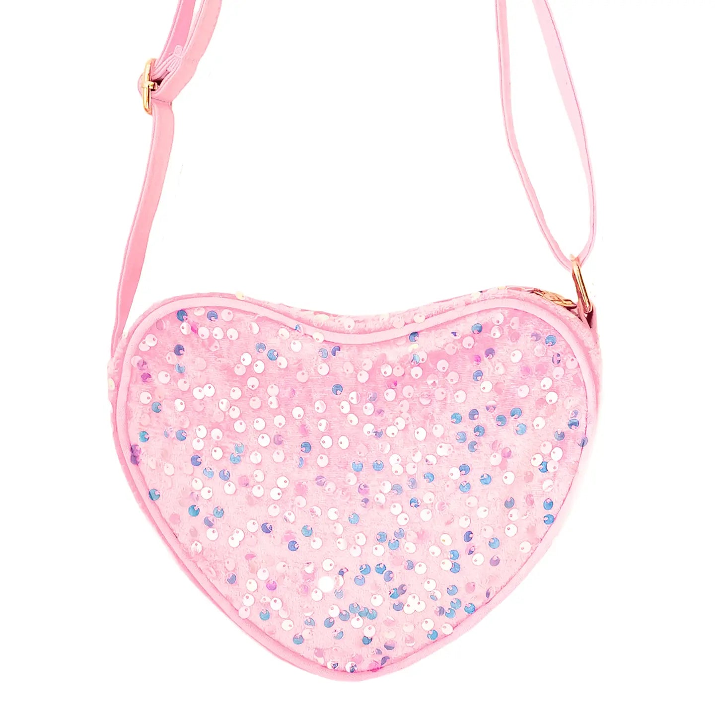 Every little girl-on-the-go needs a go-to bag as sweet and special as she is. With a pink sequin heart-shaped body, polished gold heart Bits & Bows logo charm and hardware, adjustable crossbody strap, and wipe-clean lining, it’s a functional, feminine accessory she’s sure to love all season long. A perfect holiday gift for the glamour girl! -Measures 6" x 8" -Gold hardware including logo heart zipper -Cotton, polyester blend