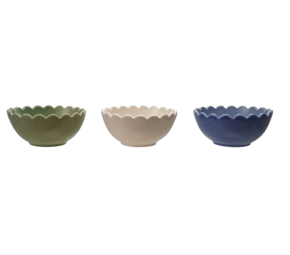 4-1/2" Round x 2"H Stoneware Scalloped Bowl, Reactive Glaze, 3 Colors