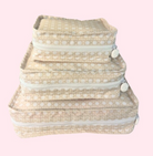 We LOVE these stacking sets! They are the ultimate organization and travel accessory! They will keep your suitcase organized for your grown up weekend away. New parents can keep diapers, wipes, and toys easily accessible in your diaper bag! College girls get ready! They are perfect for clothing items, makeup, brushes, etc! Add your monogram to your set to really make it POP!