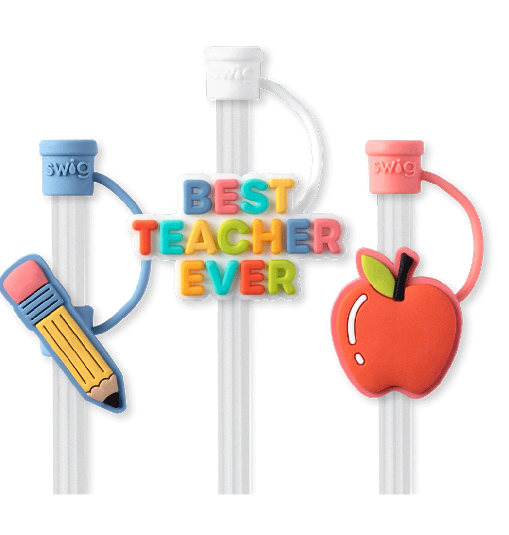 Sip in style while keeping your drinks clean and safe with our adorable Straw Topper Sets! This set features three reusable straws with whimsical silicone charms featuring protective caps. Keep them all for yourself or share them with a friend!