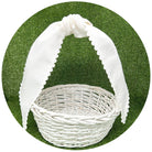 Note: These items are custom made to order and are not returnable. Custom made cotton pique sashes with ric rac trim. Perfect for baby decor and door decor. -5 inches wide enough for generous personalization options. - Machine washable for reuse making these cotton pique sashes a worthwhile investment. Perfect for baby decor, basket decor, and so much more! *Photo shows 54” tied on wreath. *Photo shows 44” tied on basket.