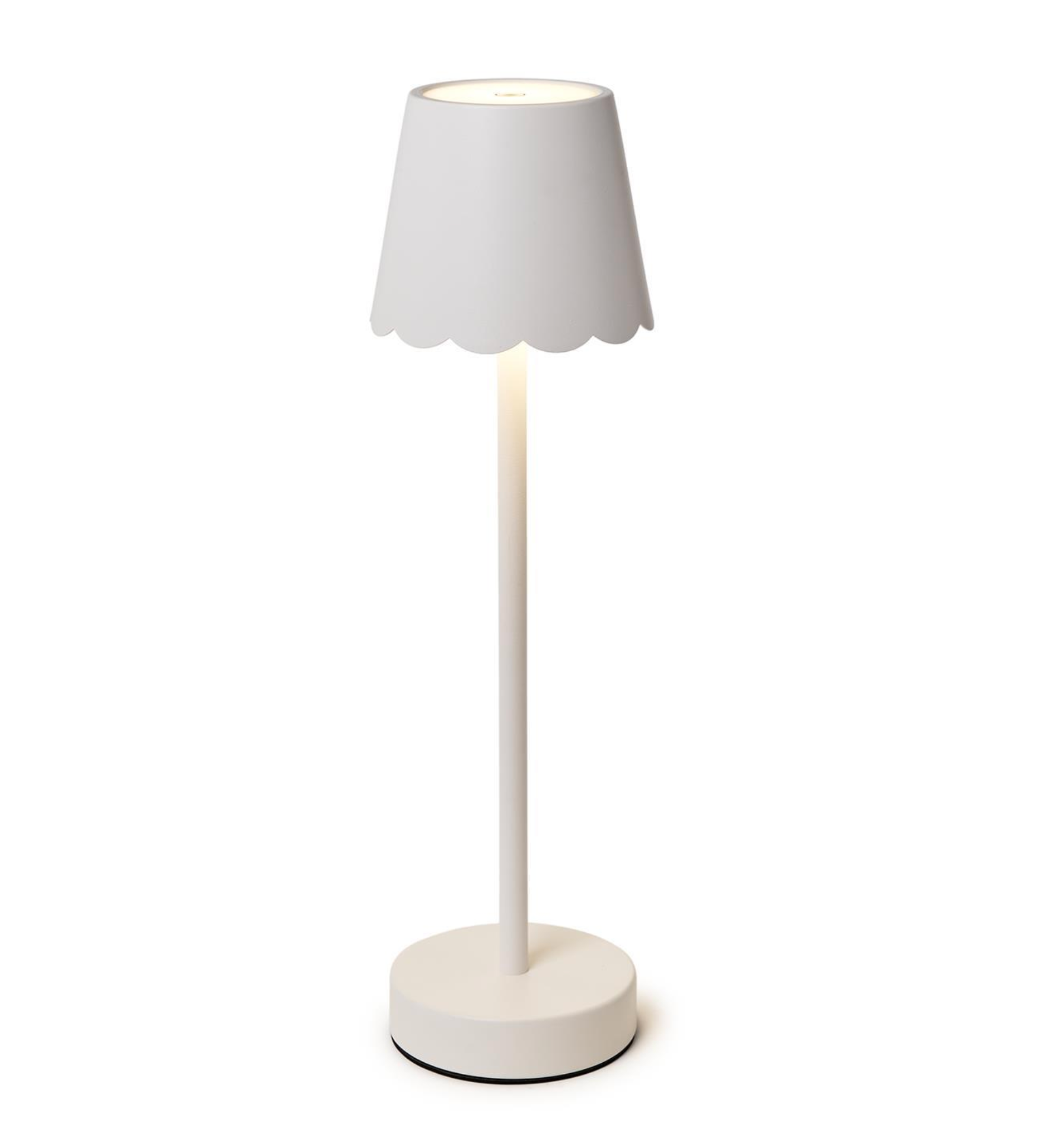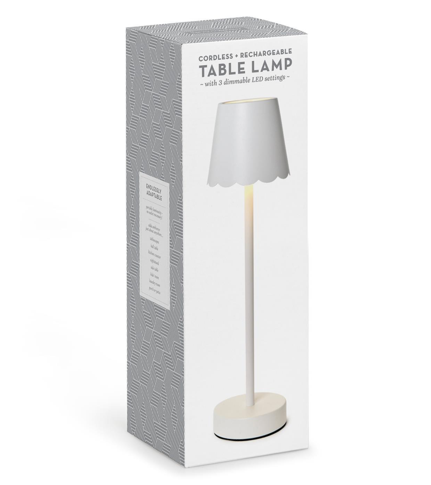White LED Cordless Table Lamp with Scalloped Edge Shade in Gift Box (4000 mAh rechargeable battery, USB cable included, 3 color stepless dimming, LED settings: warm white, cool white, daylight) - Iron