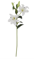 35 Inch White Real Touch Lily Stem w/3 Blooms & 2 Buds