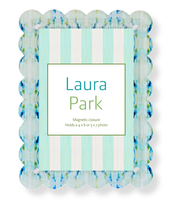 Showcase your favorite memories with this stylish acrylic picture frame. Featuring a chic scalloped edge and a durable magnetic border, it securely holds your photos and keepsakes in place while also adding a splash of color to any space.
