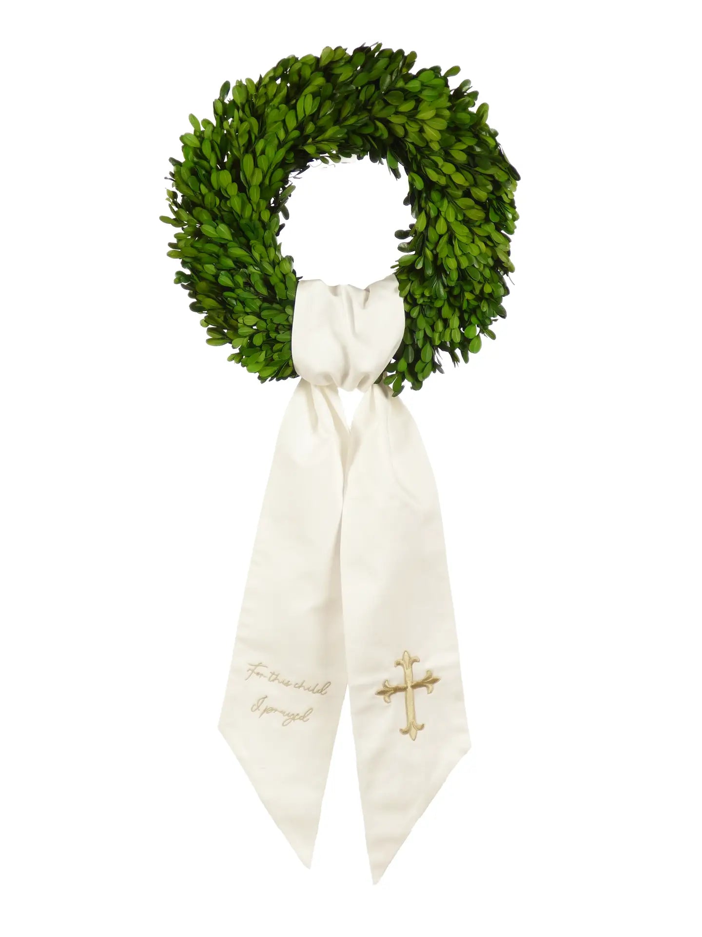 Childhood is filled with moments to be remembered. Our wreath sashes are designed to help you celebrate special milestones and holiday occasions all year long. Simply tie the sash in a knot around a wreath of your choice. Machine washable. Dry clean recommended. For indoor or outdoors if area is covered. Wreath not included.
